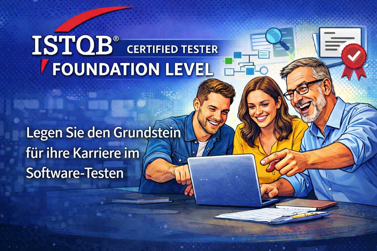 Die ISTQB® Certified Tester Foundation Level Zertifizierung richtet sich an Personen, die grundlegende Kenntnisse und praxisnahes Verständnis im Bereich Software-Testing erwerben oder nachweisen möchten. Es handelt sich um ein international etabliertes Zertifizierungsprogramm, das vom International Software Testing Qualifications Board (ISTQB®) entwickelt wurde.